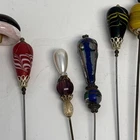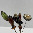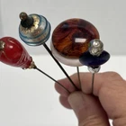 Antique Rhinestone & Celluloid Hat Stick Pins - Pair