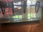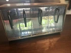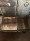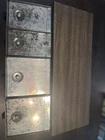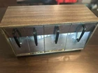 Excellent used vintage condition not free from flaws etc but great addition to any kitchen or collection.. look at photos that is the exact item you will receive This vintage canister set from Lincoln Beauty Ware is a must-have for any collector or lover of retro kitchenware. The set includes four compartments, each with a lid and handle, perfect for storing flour, sugar, coffee, or tea. The rectangular shape and walnut tone of the canisters make them a stylish addition to any kitchen. These canisters are not only functional, but also have a solid pattern and silver color that adds a touch of vintage charm. They can be wall mounted or freestanding, and are large enough to hold your baking supplies. This original set is from the 1960s and is made of metal, making it a durable and long-lasting addition to your kitchen.