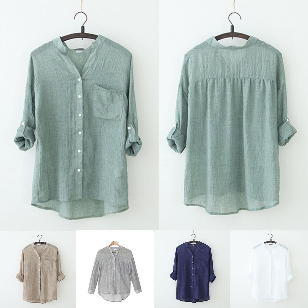 Long Sleeve Button Tops Linen Shirt Blouse Cardigan Solid Vintage Casual Thin Specifications: 100% Brand new and high quality. Size:S,M,L,XL,XXL Color: white,grey,green,khaki,dark blue Material: linen Sleeve length:long sleeve Pattern:solid color Season:summer Garment:Hand washing or machine washing,line dry. Package:1 pcs women shirt(Other Accessories are not included) Note: 1.Due to the light and screen difference, the item's color may be slightly different from the pictures. Please understand. 2.Please allow 2-3% error due to manual measurement.Please make sure you don’t mind before you bid. 3.Size doesn’t fit all.Please carefully check size chart and select the size based on your real size.