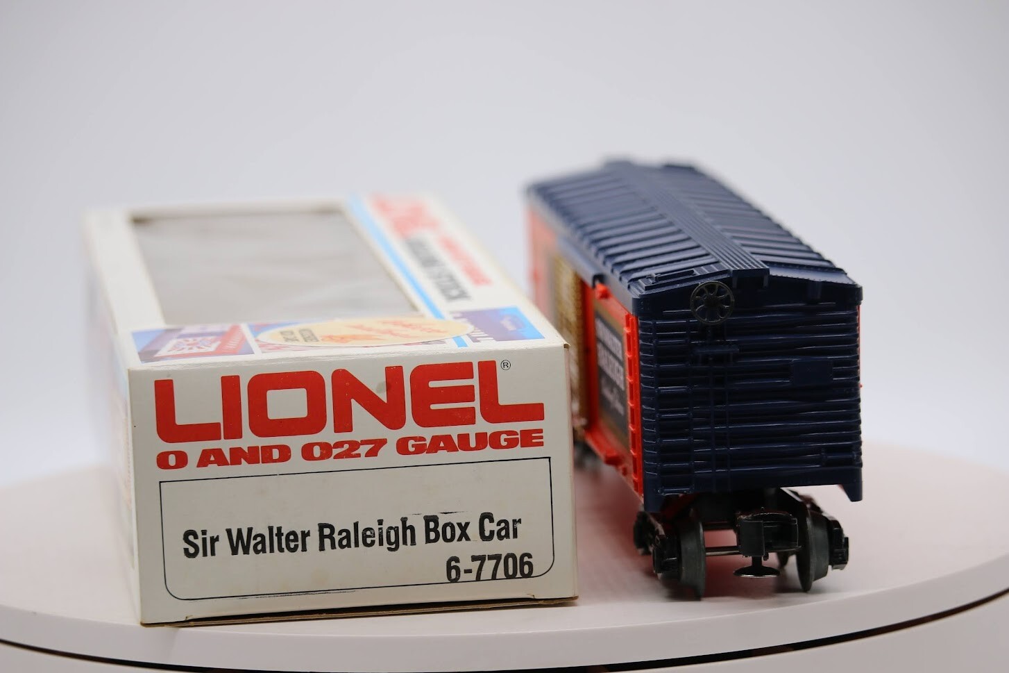 Vintage Lionel 6-7706 Sir Walter Raleigh Box Car Look closely at the pictures to see further details. We ships USPS PLEASE see photos for detailed condition!! . PLEASE LOOK AT THE PHOTOS CAREFULLY BEFORE PURCHASING!! If you are purchasing more than one item from us and would like combined shipping, PLEASE request an adjusted invoice from us while still in the cart and BEFORE paying. Ebay does not usually calculate combined shipping accurately and you might get overcharged. Please be aware that when we photograph items, we use lighting that will show the details well. Although we try to present the product as accurately as possible, the lighting may affect the overall look of the item by appearing lighter/darker or possibly a different hue than the actual item. Depending on the type of lighting you have in your home, there may be some differences between the photos and the actual item. If this is a concern of yours, please feel free to request additional photos made in natural lighting or ask for a more detailed description of the item PRIOR TO PURCHASE! PLEASE NOTE: We greatly appreciate your interest in our item for sale. We look forward to a pleasant, quick and satisfying transaction for everybody, so please note the following information before bidding. Thank you! ITEM DESCRIPTIONS: * We will try to describe items well and provide plenty of photos. Please review these carefully before bidding or purchasing. * Only the items pictured and described are what you will receive when purchased. * We will occasionally offer an item clearly marked "AS-IS". This means that we are not sure if it works because we are unable to test it for whatever reason. We will offer these at a discounted price then a similar "working" item. It is possible that these items will work fine, but it also is possible that these items are more useful for their parts. Please only bid on or purchase these items if you are well aware of this, as we will only provide refunds of actual item price (no shipping cost refunds) for these items. * If you have any questions that aren't addressed by the descriptions or photos, please feel free to ask before you bid. * There may be pieces that are missing or broken including, but not limited to, couplers, brake wheels, steps, ladders, railings, etc. May need detailed cleaning SHIPPING: * We usually do not offer shipping to international addresses, but ARE WILLING TO TAKE CONSIDERATIONS. * We try to pack items as carefully as possible, but damage may occur during shipping. If you receive an item that was damaged in shipping, please contact us and we will work with you to resolve the problem. * We will combine shipping costs for all items the same buyer purchases from us within 2 days. Please wait to pay for items until you're done shopping with us. Please contact us if you're expecting to buy more items from us, or to have us adjust the shipping costs. * We will usually ship items out within 24 hours of payment being received Sunday through Friday at noon. We will notify the buyer if there will be a delay in shipping for some reason. Please allow additional time for holidays and weekends when the post office is closed. If payment is received after noon (EST) on Friday, the item might not be shipped until the following Monday. * We do try to recycle shipping materials as much as possible. RETURNS: We abide by eBay's Money Back Guarantee. We definitely want our customers to be happy with their purchase! You may return an item within 30 days of receiving it with the following guidelines: * If the item is defective or damaged (unless we clearly marked the listing "AS-IS"), the buyer will receive a full refund after the buyer returns it and it is received by us. Customers who falsely claim their item is defective, damaged, or not as described in order to receive a full refund and free return shipping will be permanently blocked from making future purchases from us. * If the item is as described (including "AS-IS" items) and the buyer decides for any other reason than defective/damaged to return it, only the actual price of the item will be refunded once it has been returned and it is received by us. The buyer will be asked to pay all original and return shipping charges. This includes all reasons other than defective/damaged, including wrong size, wrong type, changed mind, etc. All "AS-IS" items will fall into this category of return. Please make sure the item is what you want before purchasing it. * Please contact us before initiating a refund request. FEEDBACK: We always leave feedback at the end of transaction. We consider the transaction to be over when we receive feedback from the buyer confirming the item arrived satisfactorily. If you are unsatisfied with your purchase please contact us before leaving neutral or negative feedback. WE APPRECIATE POSITIVE FEEDBACK IF YOU ARE SATISFIED WITH YOUR PURCHASE! THANK YOU FOR YOUR INTEREST IN THIS ITEM!