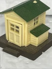 Used small station building with a conductor or passenger inside when the door opens. Electrical function has not been tested. Sold as is.