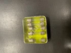 This is a set of 90 size 3AG, 8AG and SFE fast acting fuses in 18 vintage Littelfuse metal / plastic tins, themselves contained in a plastic case. Some of the fuses and tins are a bit dirty, dusty, cloudy, scratched and/or shelf-worn from long storage. Others are still bright and shiney. The plastic case has yellowed, is scratched and has some tape residue on it. The top closes properly but does not snap securely shut. Please review the pictures carefully before purchasing. Each individual tin contains 5 fuses: 3AG 1/4 amp, 3AG 3/8 amp, 3AG 1/2 amp (2 tins), 3AG 3/4 amp, 3AG 1 amp, 3AG 2 amp, 3AG 3 amp (2 tins), 3AG 4 amp, 3AG 5 amp, 3AG 8 amp 8AG 1/4 amp, 8AG 1/2 amp, 8AG 1 1/2 amp, 8 AG 5 amp SFE 9 amp, SFE 14 amp Size 3AG fuses are 1/4" by 1 1/4" (or 6.3 x 32mm) and may alternatively be designated as size AGC. Size 8AG fuses are 1/4" by 1" (or 6.3 x 25mm) and may alternatively be designated as size AGX. SFE fuses are 1/4" in diameter and vary in length by their current rating. These fuses are designed to provide precise regulation of current in automotive, industrial, radio and other electronic applications. Many people even keep the handy (but no-longer-made) metal tins with see-through covers after they become empty.
