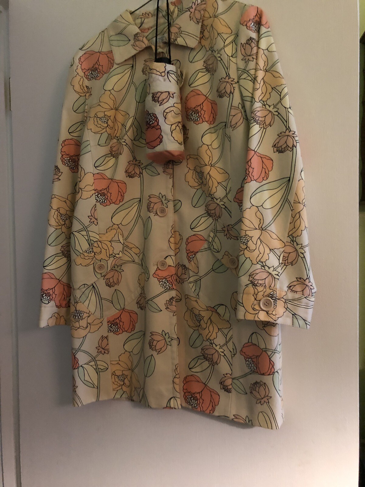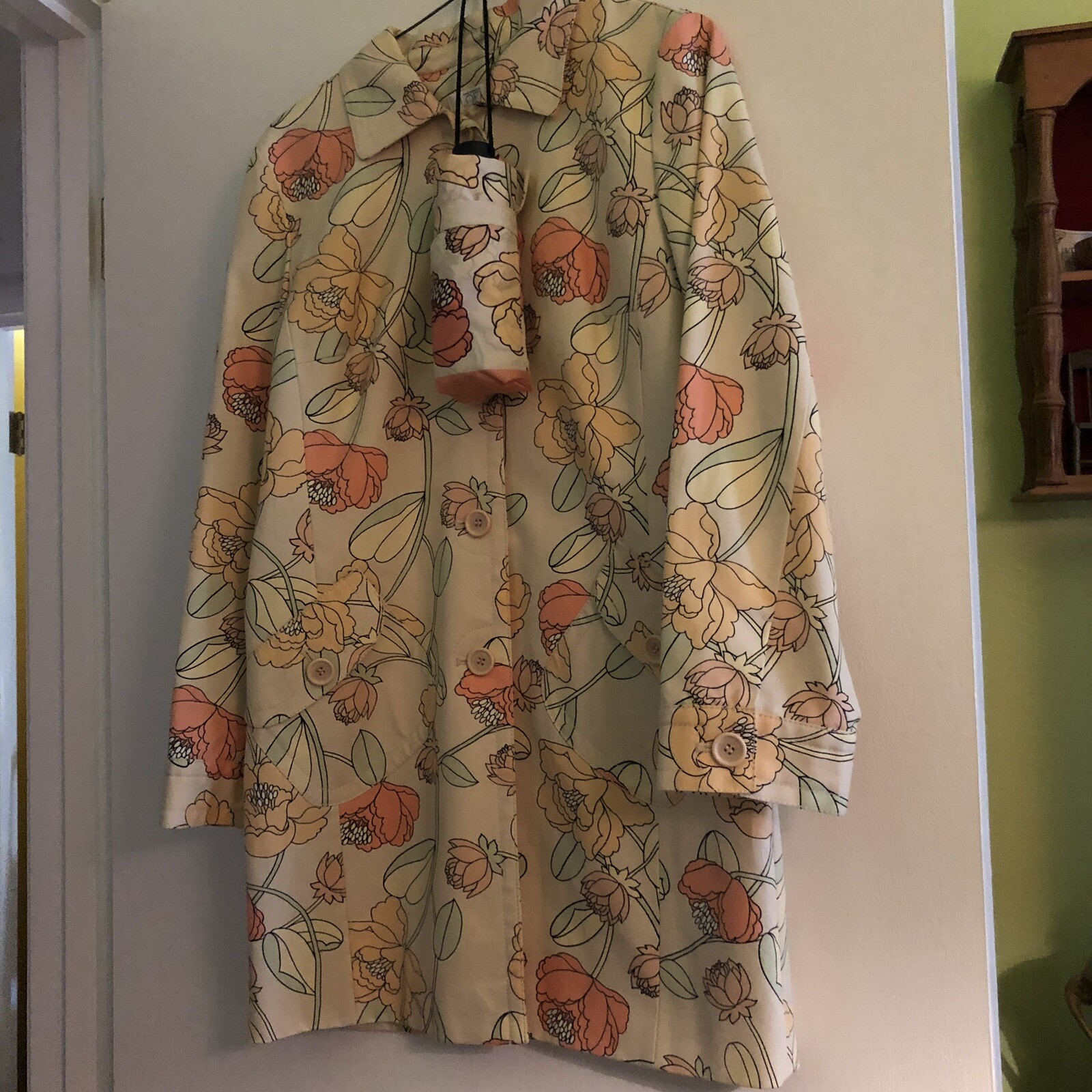 The Loft Flower Coat Matching Umbrella New Without Tag LP Colorful Beautiful flower coat with the matching umbrella look stylish fashionable in any type of weather size LP Fun to have a matching umbrella to this lovely coat Please ask any questions before purchase No returns I only ship to the US