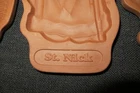 3 Longaberger Christmas Pottery Cookie and Craft Molds 1991 (Santa), 1992 (St. Nick, 1993 (Kriss Kringle). Used and in original boxes. See photos.