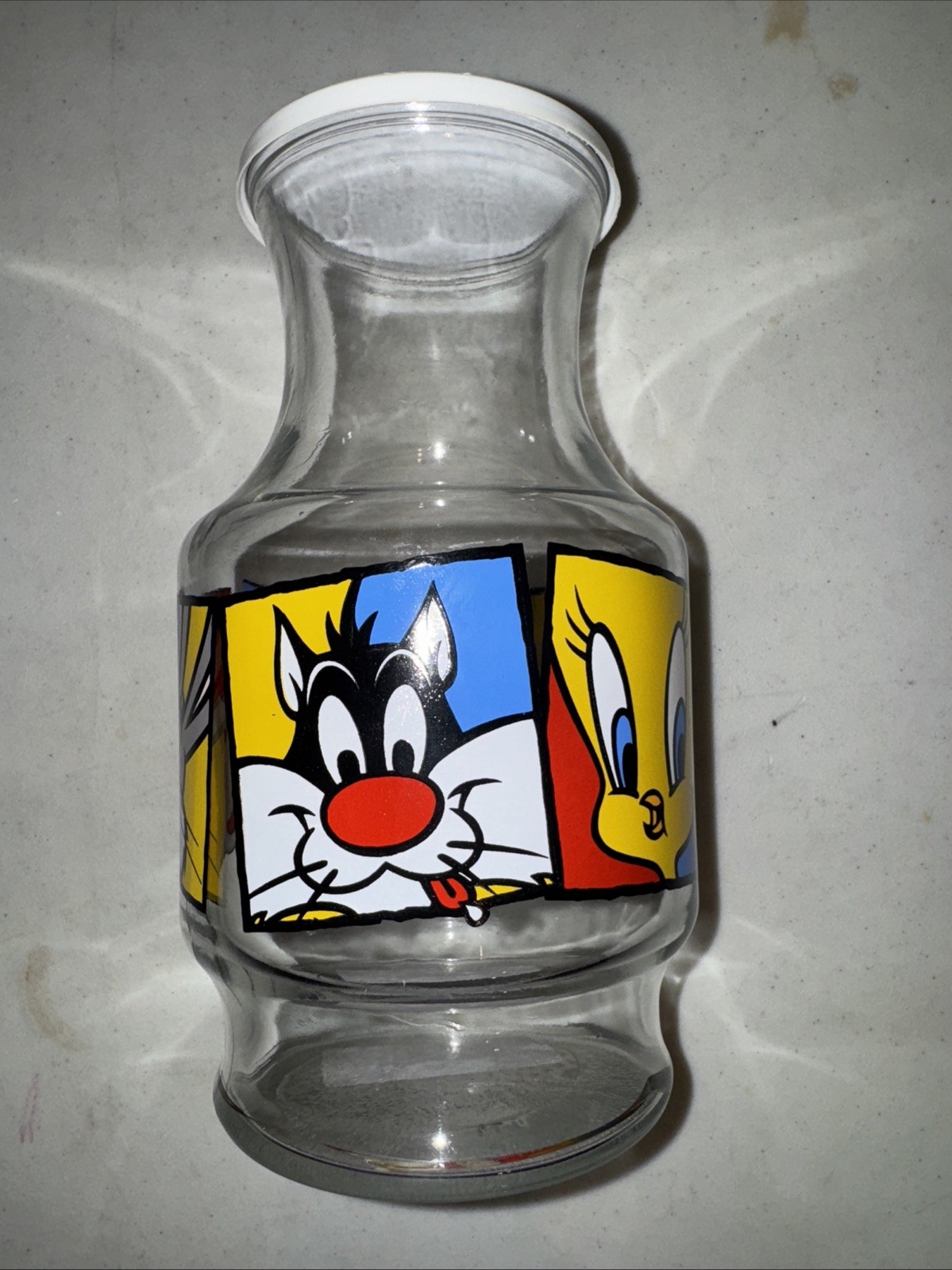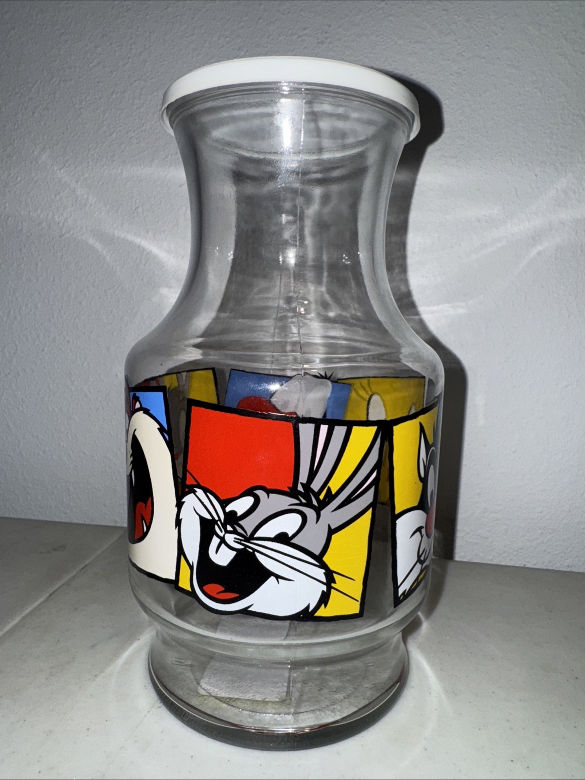 This vintage Looney Tunes 1994 Warner Bros Juice Pitcher Decanter featuring Bugs Bunny and Daffy Duck is a unique collectible piece for fans of the iconic Looney Tunes franchise. Made in the United States, this interactive decanter adds a fun and nostalgic touch to any collection with its classic Warner Bros branding and beloved characters. Perfect for showcasing your love for Bugs Bunny and other beloved Looney Tunes characters in a functional and charming way.