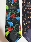 Vintage Looney Tunes ties! The Taz tie (dark blue) is made of 100% silk, while the tie with the christmas light design is 100% polyester. Slight signs of wear and a little wrinkled, but in great condition for being made in the 90s.
