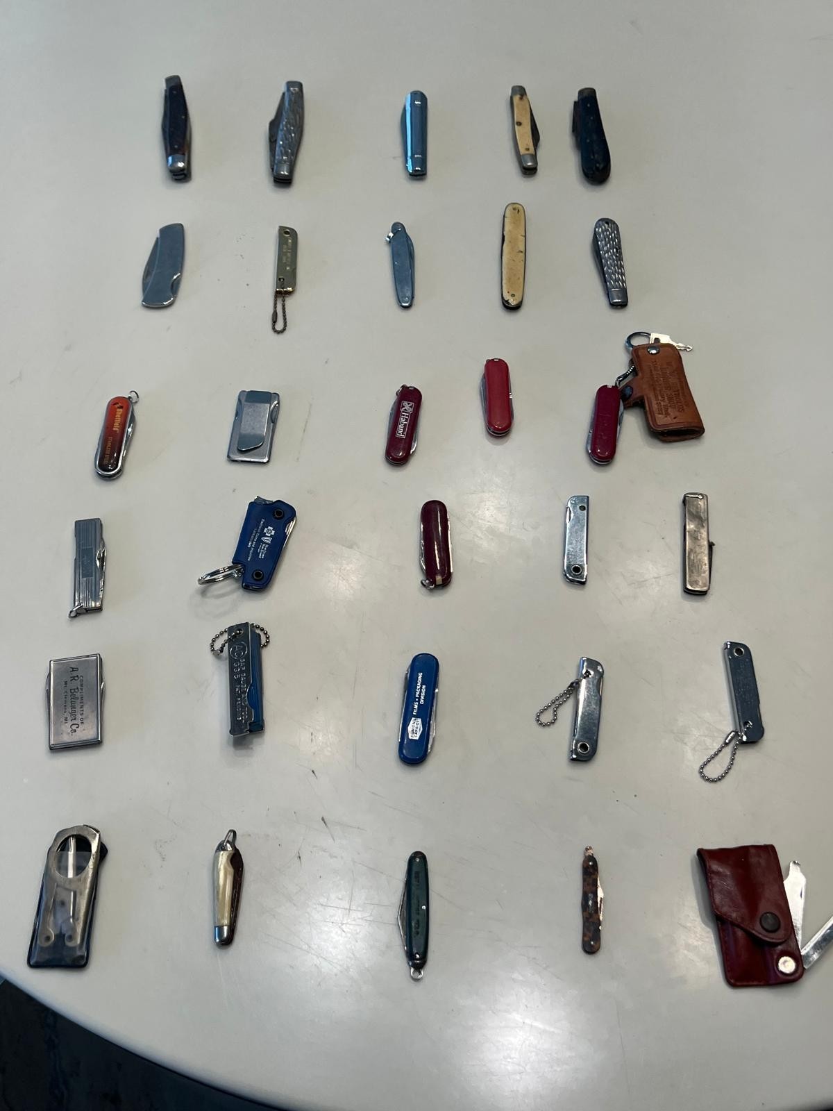 Vintage Lot of 30 Pocket Knife Victorinox Sheffield Advertising Folding Knives. Condition is Used. Shipped with USPS Ground Advantage.
