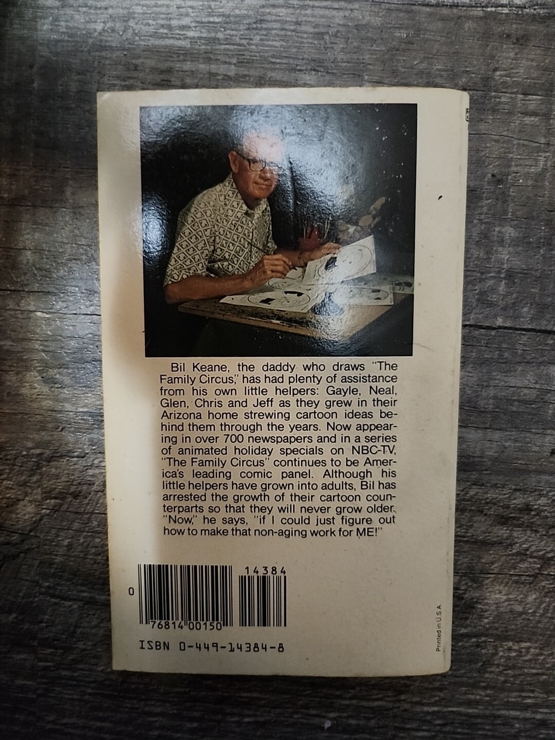 Lot of 4 Fawcett Crest Comic Paperback Books featuring the Family Circus, B.C., and Peanuts comics from 1959-1980. The short stories are illustrated and intended for young adults, ages 9-12, and adults. Written by Charles M. Schulz, Johnny Hart, and Bill Keane, the books are part of the Fawcett Crest book series, with a vintage appeal and published in English in the United States. The Family Circus - Daddy's Little Helpers 1980 B.C. Strikes Back 1965 You're a Winner Charlie Brown 1968 What Next Charlie Brown 1959 Some scribbling on covers, insides seem clean