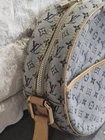 Almost flawless, does not even appear to have been used much if at all. This is a STUNNING, versatile, classic LV vintage peice in a rare shape and material. The inside of the inner pocket has a line of darkening along the top of the pocket that looks like is simply cause by aging of the adhesive holding the back of the pocket. Not very noticble at all. See photos. This is the GM, so the largest of this style, which can fit a smartphone with plenty of room and is still adorably small and cute at the same time. A very practical, yed gorgeous bag! Near impossible to fine a bag like this in such amazing condition. Vachetta has an even very light honey patina. This EUC Vintage Louis Vuitton Jeanne GM Monogram Denim Jeanne Canteen Bag is a large round shoulder bag with a LV zip closure and a vachetta crossbody strap. It features a classic monogram pattern stitched in blue denim jaquard with gold hardware accents. The bag is lined with a canvas fabric and includes an inner slip pocket. It has an adjustable strap for practicality. This limited edition piece has a date code December 2000 and comes with a brand card and original vintage dust bag, making it a luxurious, classic, and hard to find stylish accessory for various occasions.