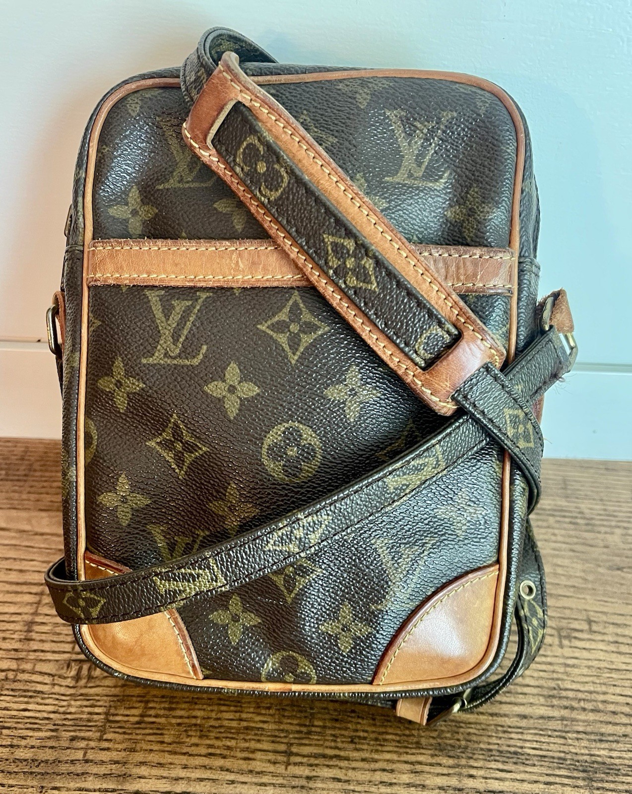 Louis Vuitton- Vintage LV Logo Monogram Canvas Danube Crossbody Bag Decent vintage condition...inside is fairly clean...no peeling or stains...no odor. Lots of life left in this one. Please inspect all photographs. Date Code: SL 0910