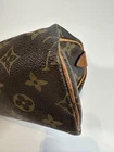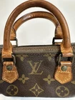 The Louis Vuitton Speedy Nano mini Boston bag measures approximately 6.30 inches wide and 3.54 inches high. The serial number is unconfirmed, but there is a white tag inside. There is overall scuffing (medium), corner scuffing (medium), significant tanning and dirt on the Vachetta leather, medium cracking on the Vachetta leather, medium scratches on the hardware, and medium staining on the inside. There is a slight odor (possibly tobacco). Accessories: None. The zipper is slightly difficult to open due to deterioration but is still functional. It can be used as a bag-in-bag or pouch. The handles have an antique look. I promise fast shipping via FedEx or DHL as soon as possible! Import duties, taxes and charges are not included in the item price or shipping charges. These charges are the buyer’s responsibility. These charges are normally collected by the delivering freight (shipping) company or when you pick the item up - do not confuse them for additional shipping charges.