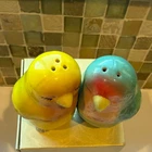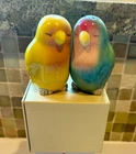 Vintage Lovebirds Salt & Pepper Shakers Magnetic so they can always be together! Beautiful vibrant colors Porcelain Stoppers on bottom