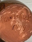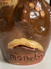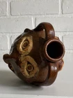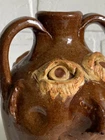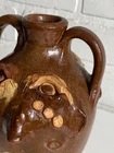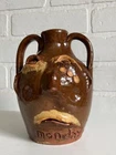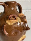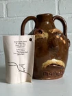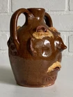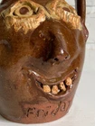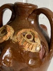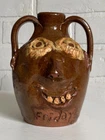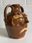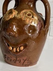 A vintage folk art pottery face jug by Lula Owens Bolick from Lenoir, North Carolina. ML Owens was her father from the original Owens Pottery in Seagrove NC. It is a two sided face jug, one side is a grumpy face for Monday, and one side is a cheerful face for Friday. Double handles. 5 1/2” tall. Original Bolick Family Pottery card inside the jug. Please email us with any questions and please check our Ebay store, Hooked-On-Vintage, for more great vintage items. PS. Please check our mini devil face jug by NC potter Jack T Maness.