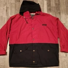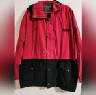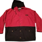 Great Pre-Loved Condition <3 Luna Pier Size: XL This Retro Rain Jacket is in GREAT condition! It has the option to go from hooded to Collared within the snap of a Button! Features a Dewar's patch on the chest for a fan favorite. If that's not your vibe nothing a new patch and iron can't fix! :) Color: Black / Red Materials: 65% Polyester, 35% Cotton Features: Hood or Collar Option Closure: Button / Zipper Pockets: (2) Front Pockets Cuffs: Velcro for the perfect fit FAST SHIPPING! :) I
