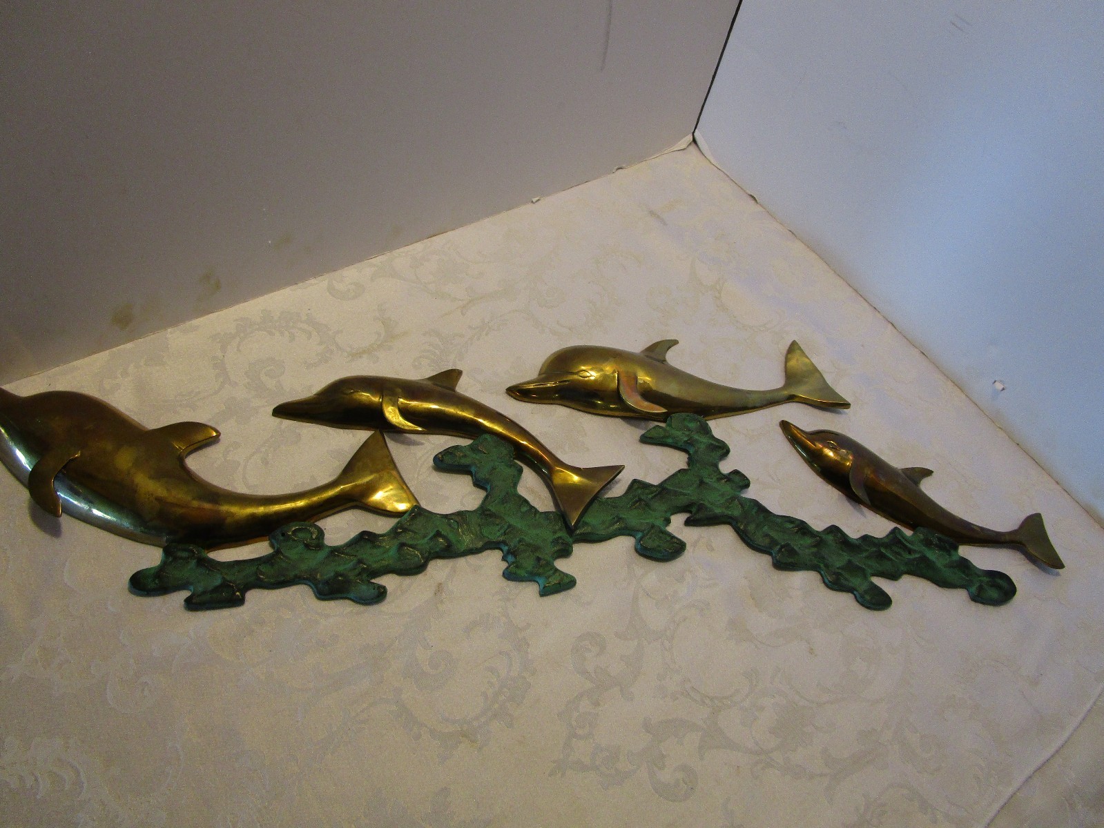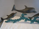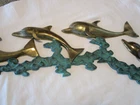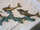 Description: 10-3-15-5 Brass dolphins, brass waves with green copper patina, great decorative piece Measurements (approx.): length 34" height 10.50" depth 1.5" deep. Specifications : brass castings, waves are brass with green copper patina Hanging: There are 2 tabs with holes on them for hanging- see pictures 21-22. There are 2 small holes in the waves, I do not know their purpose-see last 2 pictures Age : C 1980's Great vintage condition- minor scuffs and patina, structurally sound. Please zoom and view all pictures for more details as they are part of the description. I DO MY BEST TO DESCRIBE EVERY LISTING BUT I AM NOT AN EXPERT AND ITEMS ARE SOLD “AS IS”. My idea of great/good may be different than yours, so EXAMINE PHOTOS CAREFULLY since they are binding and a supplement to the word description in case I should miss something. If I fail to mention something, it does not qualify as “item not as described” if it shows in my pictures. EACH PHOTO IS WORTH A THOUSAND WORDS AND THEY ARE OF THE EXACT ITEM YOU WILL RECEIVE. RETURN POLICY: Returns are acceptable ONLY if the item is defective, or grossly misrepresented. THIS MEANS I DO NOT ACCEPT RETURNS for FIT, SIZING, COLOR ISSUES, OR BUYER'S REMORSE. Please zoom and view ALL pictures for more details as they are part of the description. Email me with any questions you may have. Please note: Buyer pays ALL return shipping and fees. · FEEDBACK I do not leave feedback until the end of a transaction. The transaction is considered over once I receive feedback from you confirming that you have received it and expressed satisfaction with it. If you are unsatisfied with your purchase, please contact me before leaving a neutral or negative feedback- so I can fix the issues. Postage is fully tracked ·