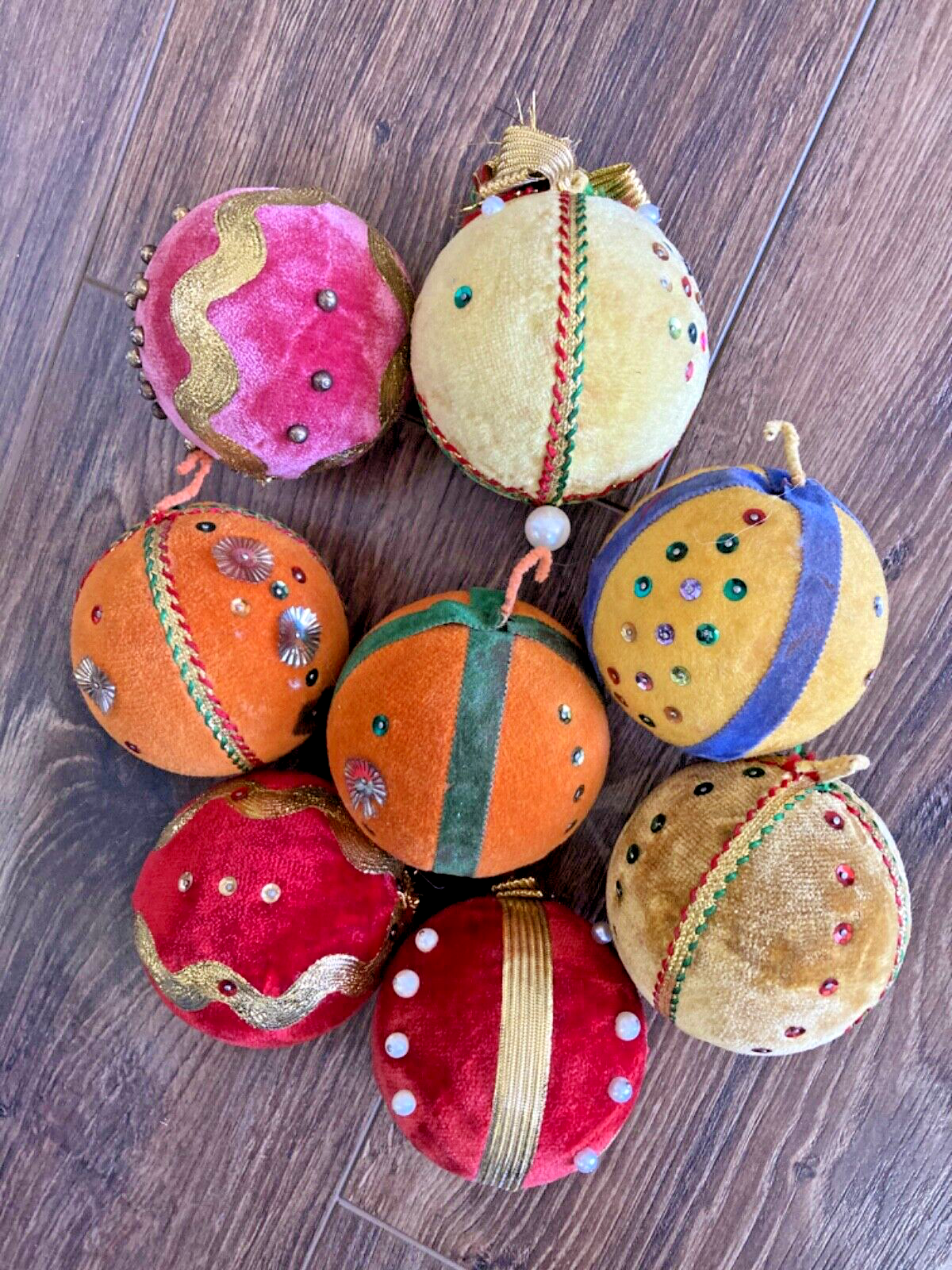 HOOKED-ON-VINTAGE IS SO PLEASED TO OFFER THESE REAL VINTAGE MCM MID-CENTURY MODERN CHRISTMAS ORNAMENTS BALLS. BOTH ARE VERY COLLECTIBLE. VTG LOT 8 CHRISTMAS TREE ORNAMENT BEADED PUSH PIN SEQUIN VELVET 2-7/8” DIAM MERRY CHRISTMAS Y’ALL! SUPER FUN LOT OF VINTAGE CHRISTMAS ORNAMENTS. We have many, many of his Christmas ornaments to list, so please check back with us. Thank you so much for stopping by Hooked-On-Vintage. We appreciate it!