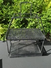 There is some wear on the metal. It can be used as it is or it can be spray painted for it to look like new. This vintage MCM Mid Century Modern black wire footed shelf magazine rack is a stylish addition to any home decor. The rack is made of high-quality wire material that is durable and long-lasting. The black color of the rack adds a touch of elegance and sophistication to any living space. The rack is perfect for holding your favorite magazines, books, or other items. Its unique design and style make it a great conversation starter. Whether you're a collector of antique furniture or just looking for a functional piece that adds a touch of style to your home, this vintage MCM Mid Century Modern black wire footed magazine rack is a great choice. 22.5x15x11