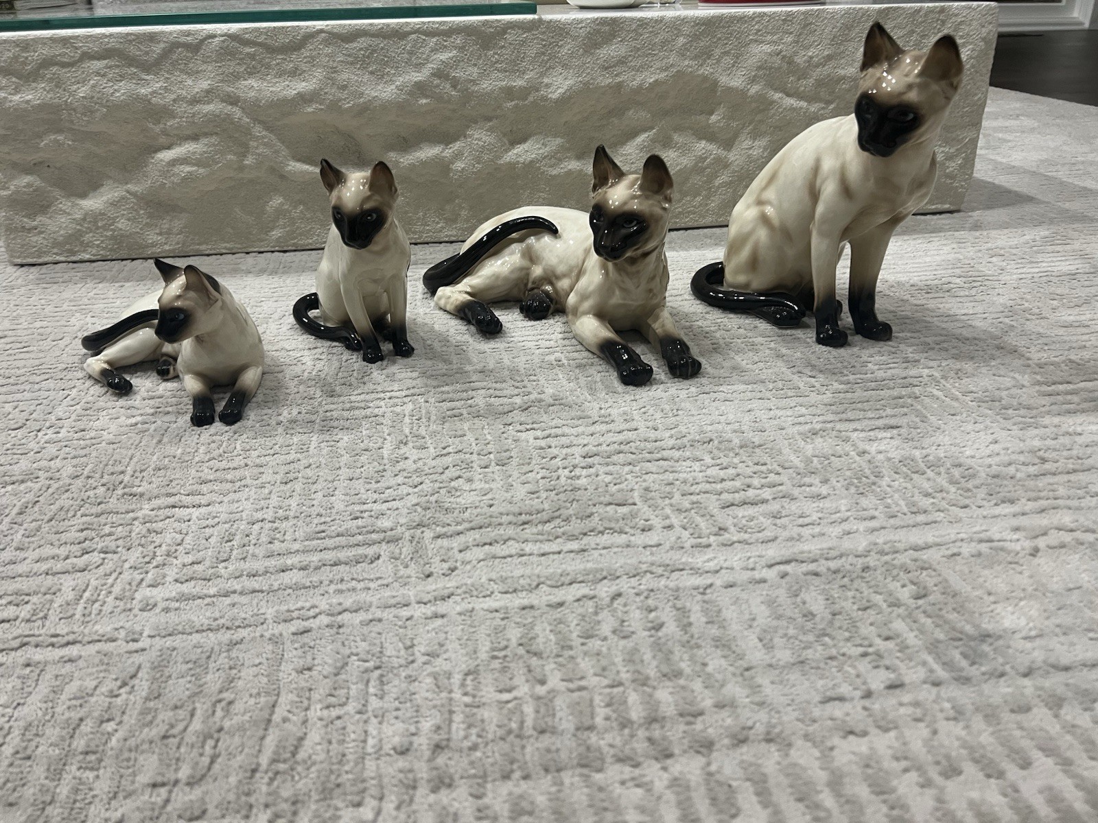 Vintage MCM Set Of 4 Siamese Cats Kittens Porcelain figurines Japan collectable. Condition is Used. Shipped with USPS Ground Advantage.
