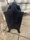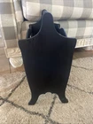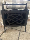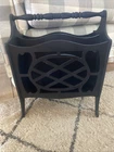 Isn’t this darling??? It’s been painted flat black entirely but look at the detailed front and back!!! It stands 17” tall, 13.5” wide and 8” deep. Two compartments for books and papers or personally I think it would be gorgeous with a throw blanket draped out next to your favorite spot to kick your feet up and relax. Solid wood turned spindle handle and sturdy considering its vintage. We do combine shipping so please check out our other listings this week!