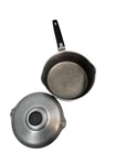 Vintage Magnalite 4000 9 Piece Set of Aluminum Cookware Dutch Oven Sauce Sautee Constructed from hand-poured cast aluminum; heavy domed lids lock-in moisture, transfer heat from vessel side walls, and help facilitate convection style heating; Phenolic handles; Oven-safe to 350 degrees F; hand wash only; interchangeable lids; includes original booklet. Made in USA Includes 4248 Dutch Oven with lid 5 quarts 2.4 quart Saucepan with lid 1 quart Saucepan with lid 7.75" small Sautee pan 9.25" Frying Pan This a a pre-owned item that may show signs of wear. In excellent condition, 2.5 quart sauce pan interior is darker in color.