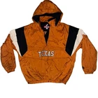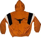 Represent the University of Texas with this vintage Majestic jacket from the 90s. This puffer jacket is perfect for the regular season and is officially licensed. Show your support for the football team with this stylish and comfortable jacket that is perfect for any fan. This jacket is a size large and is designed for men. It features the University of Texas logo and is made of high-quality materials. It's a great addition to any fan's collection and perfect for those chilly game days. Get yours now and show your team spirit!