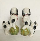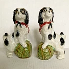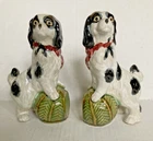 This vintage bookend set features a charming Cavalier King Charles Spaniel design, hand-painted with intricate details on ceramic and porcelain materials. The staffordshire style and glazed finish add to its unique charm, making it a perfect addition to any collection of decorative collectibles. Add a touch of nostalgia to your home with these one-of-a-kind vintage bookends. Approx. H: 7.5" L: 5" D: 3" --- 2 door cabinet