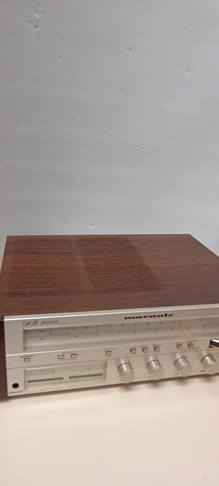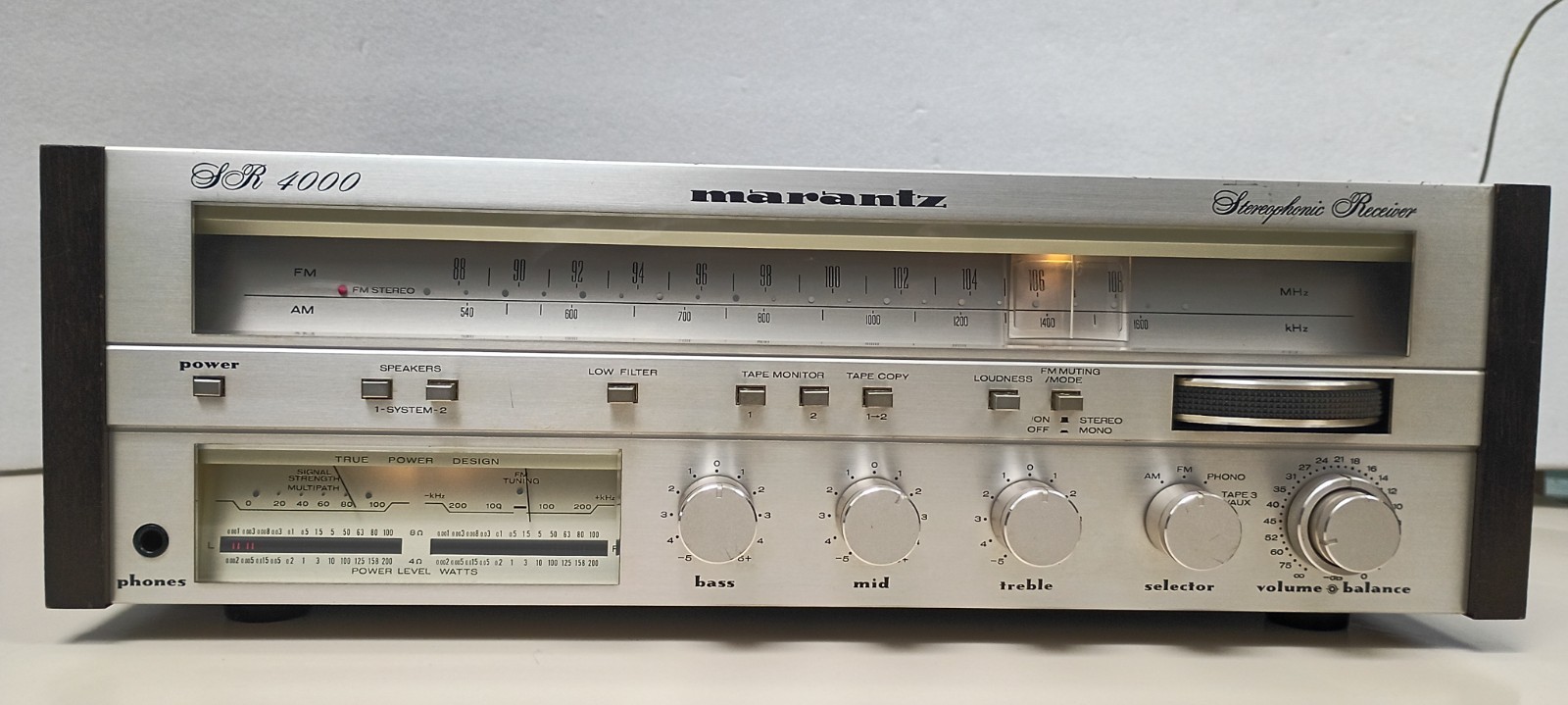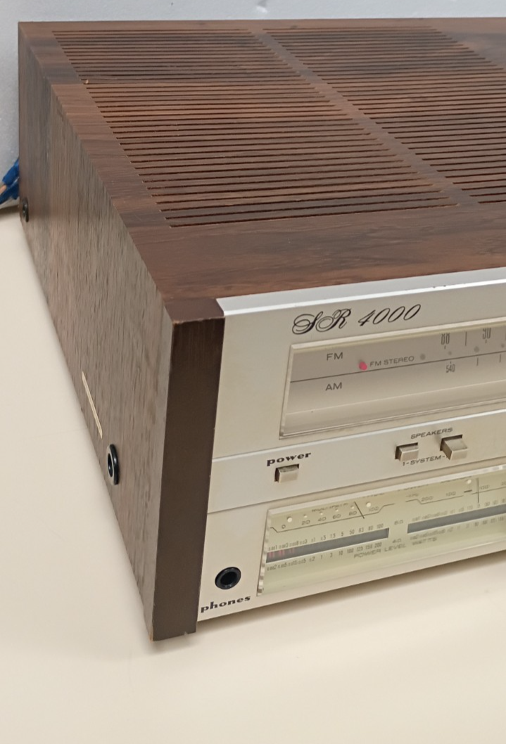 Vintage Marantz SR-4000 Stereo Receiver Tested and working all 4 audio outputs strong it does need electric cleaning because scratchy when turning volume up or down few scratches on cabinet some oxidation on chrome buttons Sold as is
