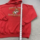Brand/Label: Jerzees by Russell Corporation Item: Pullover hoodie sweatshirt with drawstring hood and kangaroo pocket Subject/Graphic: Marine Corps Marathon with USMC Eagle, Globe & Anchor crest; front text reads "MARINE CORPS MARATHON," "TWENTIETH ANNUAL," and "22 OCTOBER 1995" Tag Size: XL (Mens) Color: Red Material: 50% Cotton / 50% Polyester Country of Origin: Made in U.S.A. Era: 1995 (90s) Features: Ribbed cuffs and hem; soft fleece interior; bold front event graphic Notes: Vintage item; sizing can vary—please compare to measurements shown in photos for best fit.