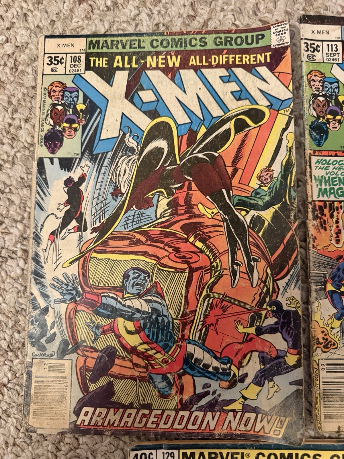5 vintage issues of Marvel X-Men / Uncanny X-Men. Issues: #102, #108, #113, #115, #129. Condition: Used / Acceptable — noticeable wear, scuffs, creases, and tears. Great for collecting/reading. Sold as a lot.
