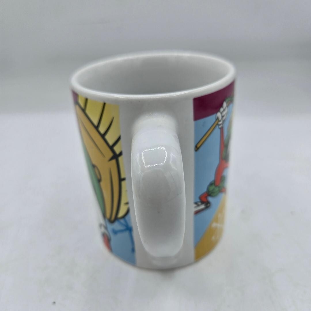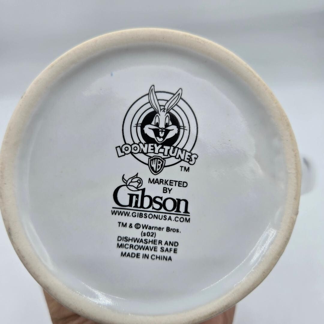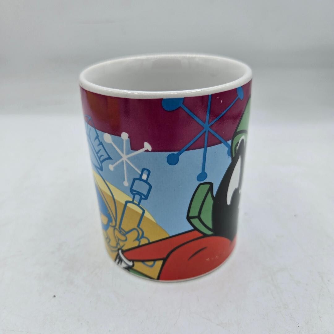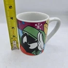 This vintage Looney Tunes coffee mug featuring the character Marvin the Martian is a rare and collectible item from Warner Bros. Animation. Made of ceramic and manufactured in 1997, this 12oz mug showcases the iconic Marvin the Martian character in multicolor, perfect for fans of the Looney Tunes franchise. The mug also includes Gibson branding and measures 4” in height and width, making it a unique and nostalgic piece of animation merchandise.