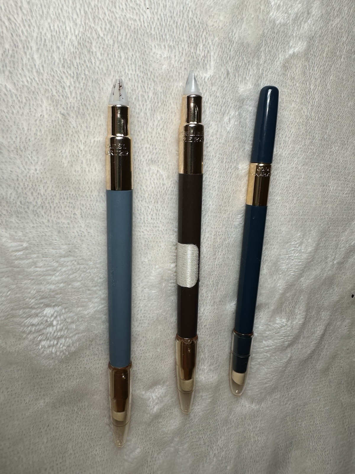 Vintage Maybelline EXPERT EYES Eye Liner lot including demo colors These were handed down to me by someone who worked with Maybelline in the 90s. The middle tape with number leads me to believe this was some kind of tester at the office! They look full, one seems to have been sharped before.