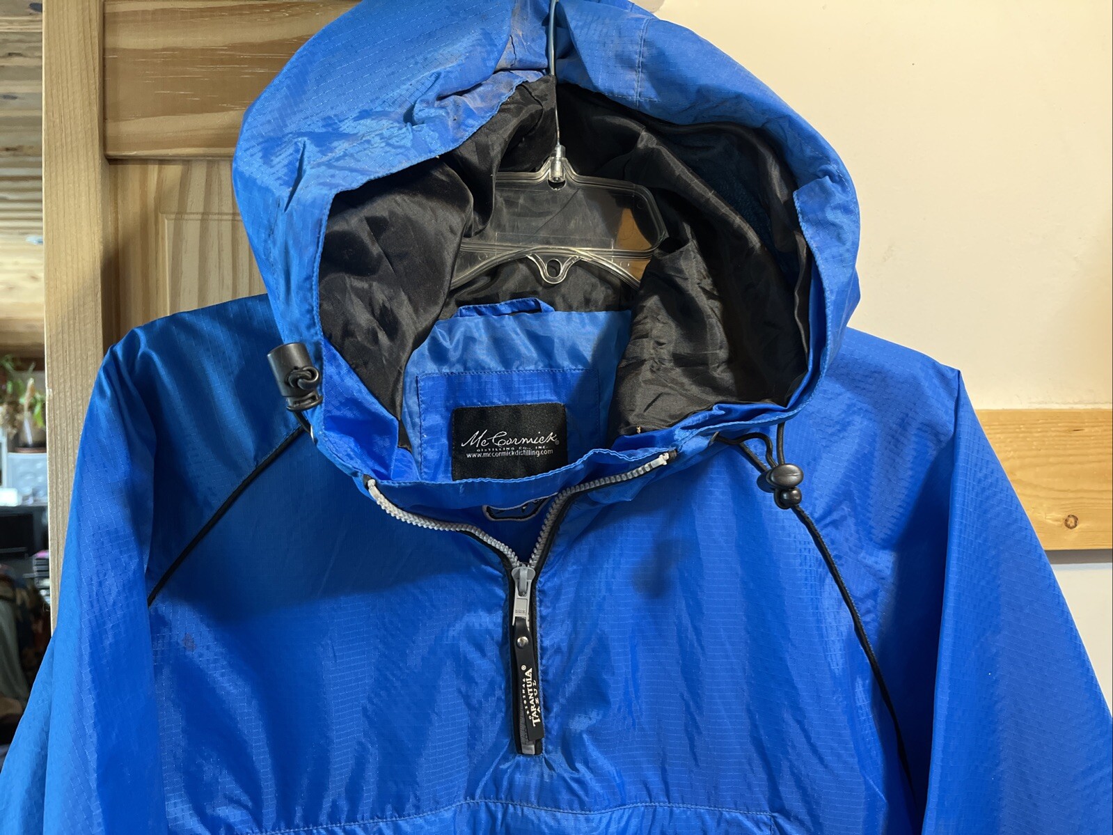 Vintage Lightweight packable raincoat. Has a few spot stains shown in photos Waist Hem is 26.5in across Underarm to underarm is 27in Shoulder to shoulder is 24in Top of shoulder to waist hem is 28.5in Shoulder seam to end of sleeve cuff is 23in