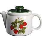 Add a touch of vintage charm to your home with this lovely McCoy Pottery Strawberry Country Teapot. The teapot stands at approximately 5½ inches tall & 5" wide. It features a beautiful strawberry pattern with a glazed finish. The piece is in excellent condition, showing very minor wear mostly on the bottom, no damage such as chips or cracks. The print is bright & displays beautifully. If you have any questions or would like more pictures of a certain angle I may have missed, just reach out & I will reply promptly. Thank you!