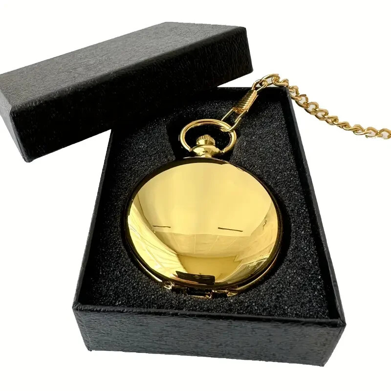 Crafted for the modern gentleman with a taste for classic style, this Retro Men's Manual Mechanical Pocket Watch boasts a sophisticated yellow gold case color and a luxurious aesthetic. The dual open cover design reveals a mechanical (automatic) movement at work, complemented by Roman numerals that sweep across the analog display, marking time with elegance and precision.This timepiece comes complete with its original box and packaging, ensuring it's ready to be cherished or gifted. The gold-plated case material adds a touch of enduring quality, making it a timeless accessory for any occasion. Whether for personal enjoyment or as a special present, this pocket watch is sure to impress.