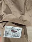 This is a men's vintage London Fog bomber jacket in size 44 Long. The jacket is made from a cotton-polyester blend material in a beige color with a solid pattern. It's in great condition, but has a very small stain on left sleeve. From a smoke-free home.