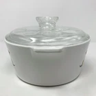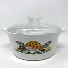 Vintage Merry Mushroom Corning Ware 1.75 Qt Casserole Dish w Dimple Lid *READ* Vintage used condition with lid. Lid has 4 good size chips on the inside rim (see photos). Casserole has some wear/scratches particularly the top rim. Please check photos for details of condition. Please choose economy or priority shipping in the options. Feel free to contact me with any questions, I'm happy to help.