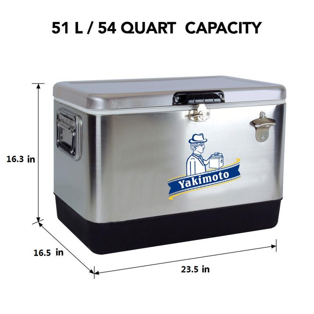 How does the cooler work? Our cooling technology is not comparable with other cool boxes. If you combine the Cooler Box Correct use, the temperature inside can be kept constant for many days - without power supply, in any climate zone, anywhere in the world. Product Information: Product Name: Waterproof Metal Ice Cooler 54 QT Yakimoto Vintage Stainles Steel Ice Chest Product Model: 2024JHH001 6 Capacity: 51 Liter Material: Stainless Steel+PU+Aluminium Size(Inch): 23.6 " x16. 5 " x16.3 ", Size(Cm); 60x42x41.5 cm Packing: Each piece in a carton Meas.: 62x43x47.5 cm G.W/N.W: 7.3/8.5 KG S · Huge 51 L (54 qt) Capacity: Portable ice chest features a generous 51 liter (54 quart) capacity that can hold up to 85 standard soft drink cans so you have room for whatever you need · Built-In Bottle Opener: This cooler features a bottle opener conveniently attached to the outside so you don?t have to scramble or search when you want a cold one · Eco-Friendly Cooling On the Go: Environmentally-friendly cooler features premium insulation and a securely locking steel latch to keep your drinks and snacks cool without electricity · Durable Construction: Expert craftsmanship and quality materials including rustproof stainless steel exterior and a rugged plastic base mean this ice chest is in it for the long haul · Easy to Clean: Stain-resistant food-grade plastic lining and leak-proof channel drain for no-tilt draining make emptying and cleaning your cooler a breeze Product Description This durable 51L / 54 Quart stainless steel ice chest is the ideal personal cooler to keep your favorite foods and beverages chilled and ready to drink. Fill this insulated cooler with ice and pre-chilled drinks and snacks for environmentally safe storage without the need for electricity. The solid steel latch and non-toxic plastic liner trap cold air inside for maximum efficiency, and the leak-proof channel drain makes cleanup a breeze. With its durable stainless steel finish, easy-to-carry rubberized handles and built-in bottle opener, this ice chest is the perfect accessory for day trips, tailgating, boating, fishing, hunting, camping or your next backyard BBQ. Good helper for you when go outside. Featuring portable, it can be applied in various situations, when you go for a long-distance self-drive travel, or you go out for a picnic and camping, or you use it as a moveable medical cooler box, etc. There is no doubt it plays an important role in outside activities. Our high-quality cool boxes offer you maximum independence and optimum cooling without electricity. Thanks to innovative high-performance insulation and special temperature elements, food and drinks stay fresh or frozen for days. Perfect for camping, outdoor adventures and everyday use, our robust, easily transportable cool boxes combine sustainability and efficiency. Don’t hesitate to Choose This Cooler!