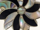 Vintage Alpaca Mexico 925 Silver Black Onyx & Abalone Shell Mother Of Pearl Pin Brooch. Pinwheel Star Design. Excellent Condition with Absolutely No damage.