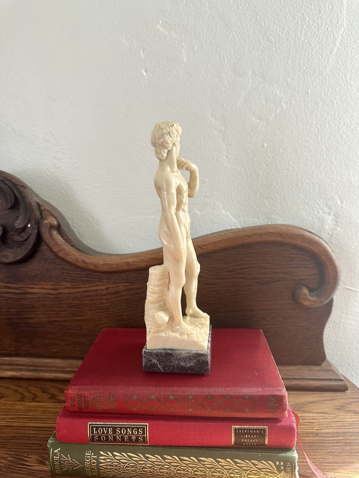 Resin sculpture of David Signed 7in tall Please keep in mind all items are in great but vintage condition which can include a scratch, scuff, spot etc. If you have questions about a specific item condition, please let me know.
