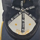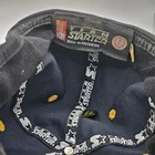 This is a vintage Michigan Wolverines baseball hat by Starter, officially licensed with team embroidery. It is an adjustable blue cap for men, perfect for regular season games. Made in Indonesia. It still has the original cardboard in it, but some blemishes from storage. Sold as is