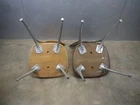 Just as found. Just as pictured. Wear and patina consistent with age and use. Blonde one is missing a foot glide. Darker one has cracks in the seat. Worthy of full restoration. Ships professionally packaged UPS ground to the lower 48 only for a flat $59.95. No PO Boxes. Assembly required.