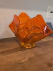 This Vintage Mid Century Modern Viking Glass Style Orange Cadmium Handkerchief Bowl is a stunning piece of American art glass. Handcrafted in the United States, this unique bowl features a vibrant orange color and a glossy finish, perfect for all occasions.