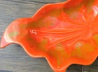 These stunning vintage leaf dishes bring mid-century charm to any space! The rich orange and gold glaze catches the light beautifully, and the handcrafted details make them true conversation pieces. Perfect for display or serving, their organic shape and glossy finish add a warm, artistic flair. Love the California craftsmanship—such a unique find!