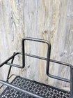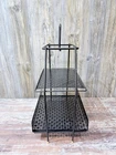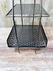 Vintage mid-century modern Ashtray/Magazine Rack Black & White In good overall condition there are some areas where paint could be touched up on the metal rack The ashtray is in good condition with no chips or cracks. There is some mild crazing. It measures 22 inches high by fourteen and three quarter inches long and 11 inches wide. The ashtray measures 7 and three quarter inches by 11 1/4 inches.