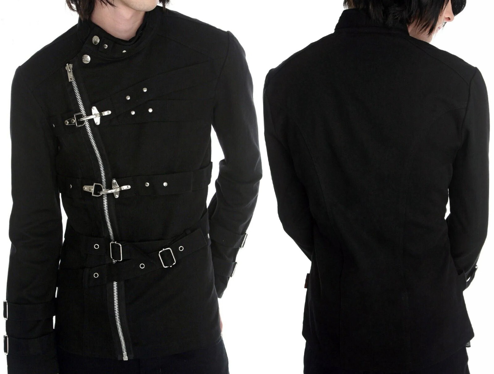 This black Military Drummer Jacket by Darkrock is a vintage-style piece with a punk and goth aesthetic, inspired by Adam Ant and parade fashion. Made of cotton with a polyester lining, it features a stand-up collar, button closure, and zipper accents. The lightweight jacket is suitable for all seasons and occasions, from casual to formal wear. Handmade with a regular fit, it exudes a rebellious, edgy vibe perfect for individuals looking to make a statement with their fashion choices. Ship from USA.