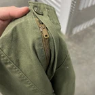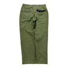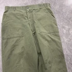 Vintage Military OG 507 Pants in a refreshing green hue, size 38x31, crafted from a durable poly-cotton blend. These pants showcase classic design with a flat front and straight leg style, perfect for workwear or a retro army-inspired look. The mid-rise chinos feature a comfortable fit, secured with a button and zip closure, and are easily maintained with machine washable convenience. Proudly made in the United States, these pants embody functionality with accents like the distinctive zipper detail and are a testament to timeless style with their solid color and robust canvas fabric. Ideal for all seasons, they're not just about looks; they're about practicality and the robustness that comes with a Levi's 500 Series vintage lineage.