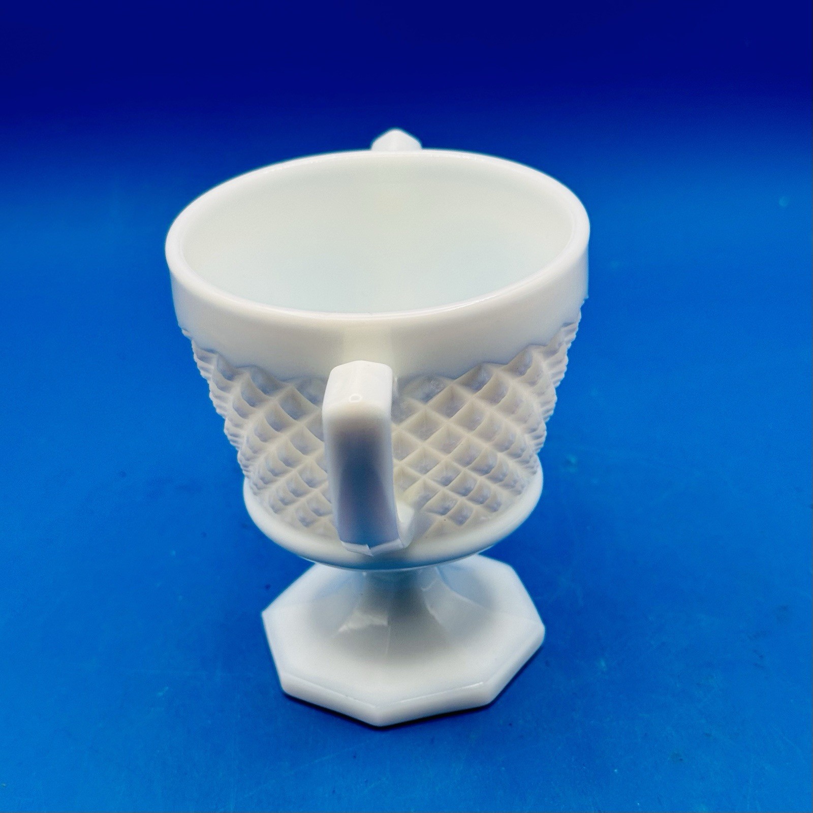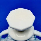 The Milk Glass Sugar Bowl by Westmoreland is a classic and elegant addition to any kitchen or dining set. Made of white glass, this sugar bowl is perfect for storing and serving sugar with a touch of sophistication. The sleek design and high-quality craftsmanship make it a timeless piece that can be used for years to come. Ideal for collectors or those looking to add a touch of vintage charm to their home decor, this sugar bowl is a must-have for any kitchen.