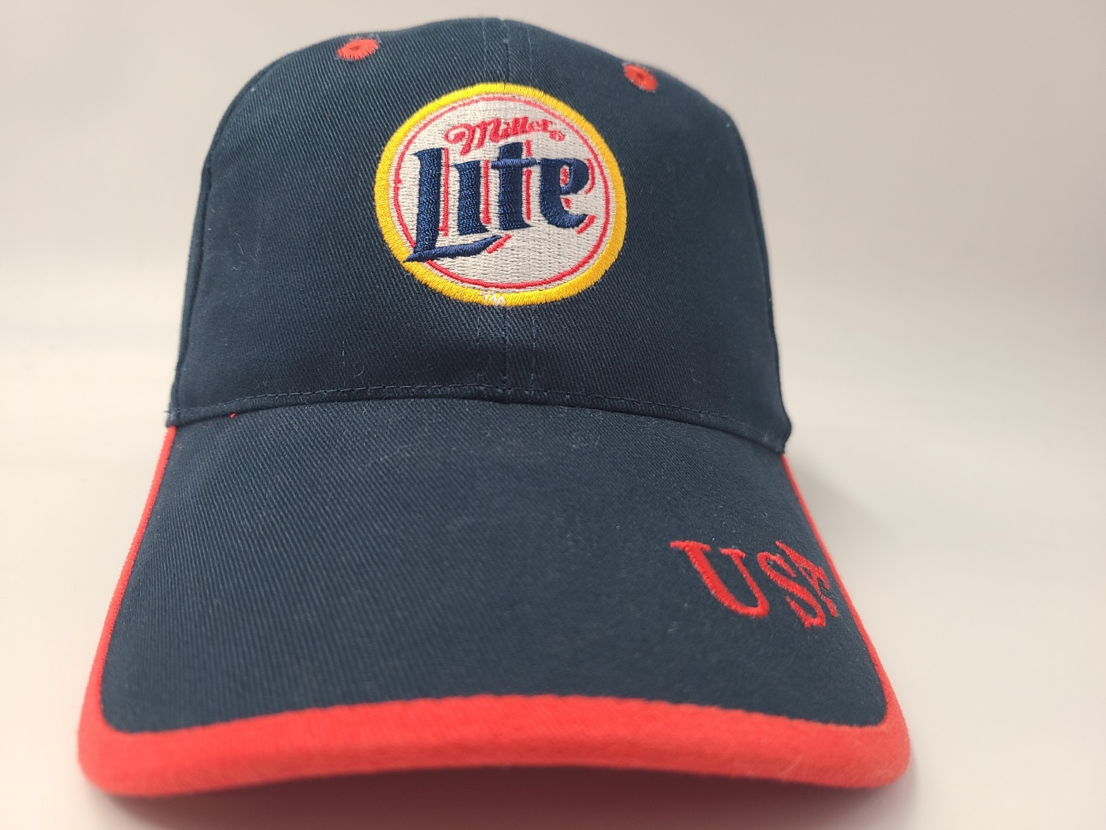 Vintage Miller Lite USA American Flag Acme Adjustable Hat Cap Men Women Blue Red. EACH ADDITIONAL HAT PURCHASED IS ONLY $1 ADDED SHIPPING!