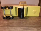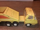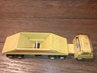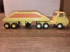 The Vintage Mini Tonka Bottom Dump Semi & Trailer Truck is a collectible pressed steel toy vehicle from 1970, featuring the iconic yellow color associated with Tonka brand trucks. This classic toy is perfect for both boys and girls aged 17 years and up who appreciate vintage diecast vehicles. With its detailed design and sturdy construction, this truck is a must-have for any toy or vintage vehicle collector looking to add a piece of nostalgia to their collection. Please see all pics for flaws. Sold As Is.