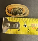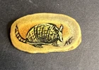 This vintage miniature hand-painted armadillo sculpture is crafted on a small piece of polished bone, making it a unique and intricate piece of Southwestern-themed decor. The hand-painted details bring the armadillo to life, showcasing its intricate shell and features. This one-of-a-kind collectible is signed by the artist, adding to its originality and charm. Perfect for any room, this small sculpture is a testament to the skill and craftsmanship of the artist who created it.